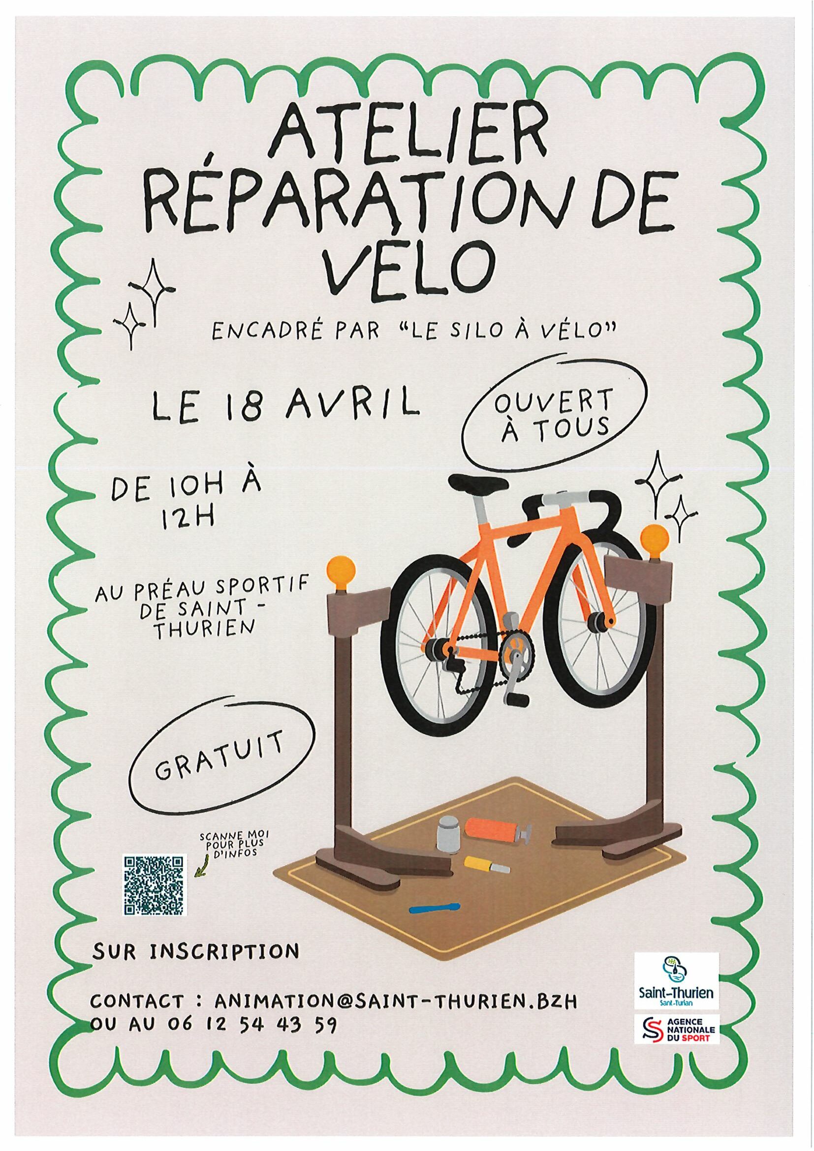 Ces ateliers sont ouverts à toutes et à tous, que vous soyez habitant de la commune ou non. Ils seront encadrés par « Le silo à vélo » : une personne vous montrera les gestes nécessaires et vous accompagnera dans la réparation de votre vélo.