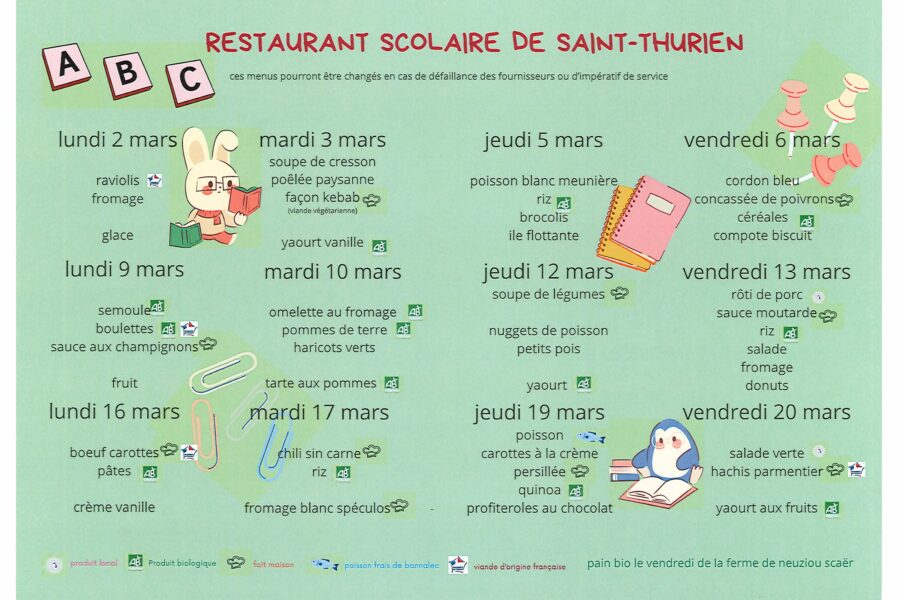 MENU COMMUN AU RESTAURANT SCOLAIRE ActualitésÉcoleNon catégorisé MENU COMMUN AU RESTAURANT SCOLAIRE Mairie de Saint-Thurien10 octobre 2025